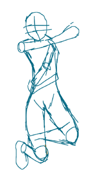 バランスがとりやすいように描いてます。あ、この構図だと左手描かなくていいなぁ、消えるなぁ!とちょっと喜んだ。手はバランスがとりにくいから、あんまり描きたくないんだ。