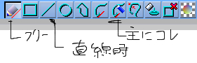 いままでは、鉛筆型のフリーハンドで線を描いてきました。初期状態は常にフリーになっています。