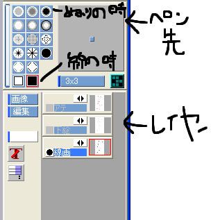 まず、ペン先が今までと変わっています。右下のほーの、黒い四角です、【■】