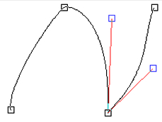 そのほかに、赤い線と青い□があるのに気づいてもらえると思います。これは、曲線を操作するワイヤーです。この赤い線と青い四角を操作することにより、曲線の曲がり具合を調整することが出来ます